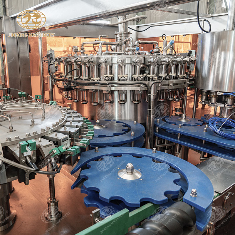 在玻璃瓶碳酸飲料生產線上,不僅僅是灌裝部分,還需要其余的自動化設備進行配合生產,才能完成二氧化碳氣體飲料的制造。主要采用純凈水用于配料后的口感更好。